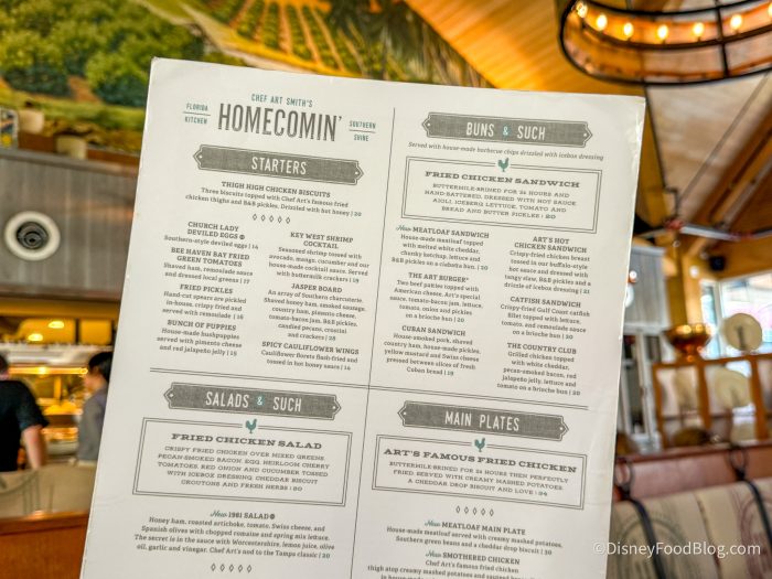 Disclosure: In nearly all circumstances, Disney Food Blog writers and photographers pay full price for their own travel, hotel, food, beverage, and event tickets. We do this because it’s important to us as journalists to ensure not only that we give you unbiased opinions, but also that you can trust us to do so since we’re paying our own way. On rare occasions, when we are invited by a company to attend a preview as media, and when we choose to accept that invitation, we will always make you, our readers, aware of that situation. Today, we were invited by Disney World to attend a media event which included a stop at Homecomin’. Note that when we attend events as media we are 1) Not required to review that event/food on any of our channels, and 2) Not required to review that event/food favorably. You can always count on DFB to give you a 100% unbiased and honest review of any event that we attend, food that we eat, or beverage that we drink. You can see more in our Disclosure Policy. Thank you for reading. — AJ