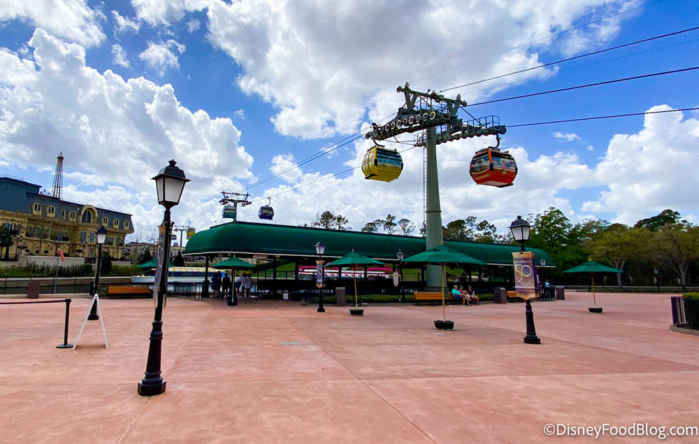 If you are staying at a Skyliner hotel like Pop Century Resort, Art of Animation Resort, the Riviera Resort, or Caribbean Beach Resort, the EPCOT Skyliner station is located at the International Gateway entrance.