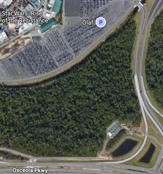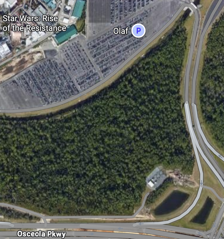 It’s faintly overlaid on top of the existing Cast Member parking lot, which is a zoomed-in version of this map: