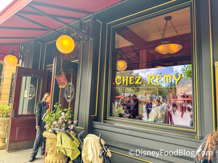 When we say this restaurant looked like it was pulled from the movie, we really mean it! We had to wait a little outside as there was a line for this popular dining spot. The doors had cute nods to Remy on them, and you could even see the iconic sign of Remy holding a wooden spoon similar to the one you see in the movie.