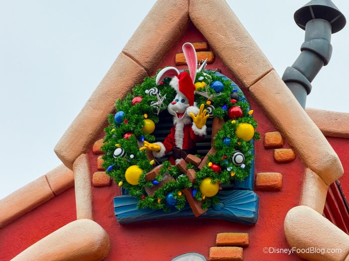Even Roger Rabbit’s Car Toon Spin has been decked out with holiday cheer.