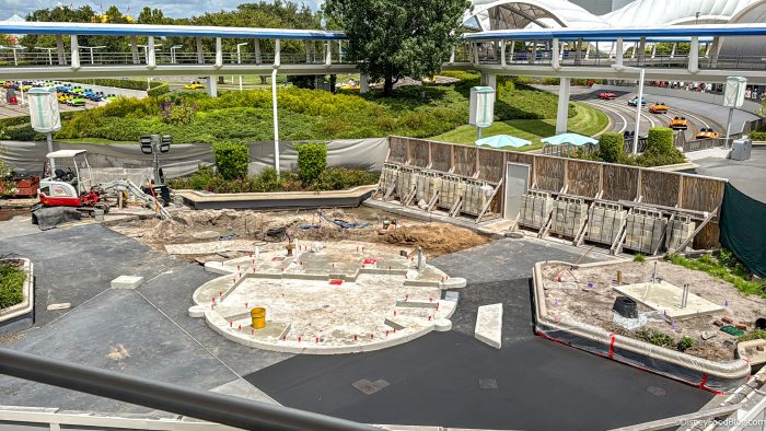Then by the end of September, a new structure appeared, and we got some great views of it from the PeopleMover. We were hoping that our red ship would return, but it’s not looking good! After Disney announced the new AstroFizz snack stand, we turned to the MyDisneyExperience App and noticed the new stand’s location on the map is the same as Cool Ship’s previous location.