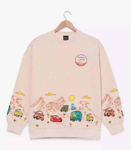 It’s time to go racing in this adorable sweatshirt! The crewneck features some beloved Cars characters, like Lightning McQueen, Tow Mater, Sarge, and more. The design goes all the way around the sweatshirt, and we think it looks so cozy!
