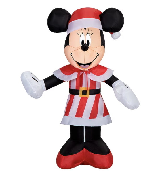 What’s Christmas without a fun outfit and Minnie Mouse? Minnie stands at three and a half feet tall in her peppermint-striped dress. She’s also donned a Santa hat and red cape for the occasion. She has interior lights that make her shine bright, and they’re energy-efficient LED lights!
