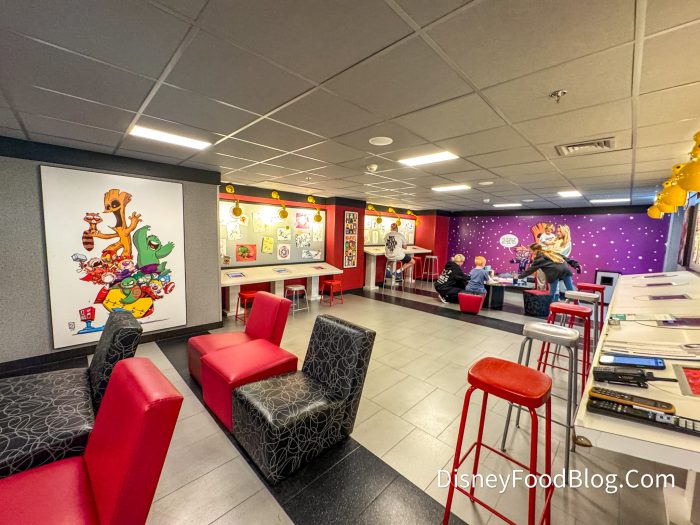 The design studio offers a place for kiddos to draw, do Marvel trivia, and watch Marvel films throughout your stay. I