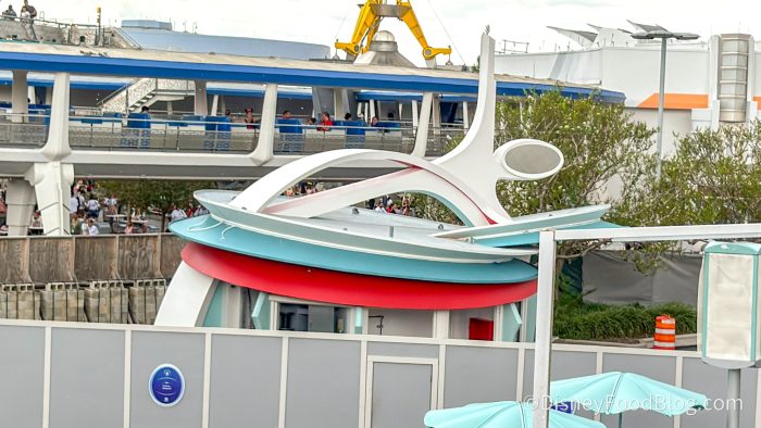 The iconic red spaceship flew away and was replaced with a more modern style. It still has the retro feeling with the colors, blending right into Tomorrowland.