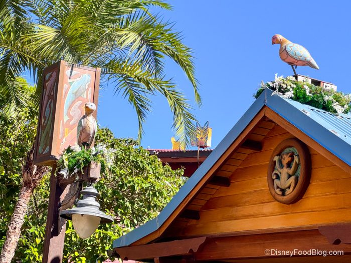 Yes, the first decorations have arrived in Animal Kingdom, and we couldn’t be more excited. Today, we noticed the carved animals on the top of the shops had appeared.