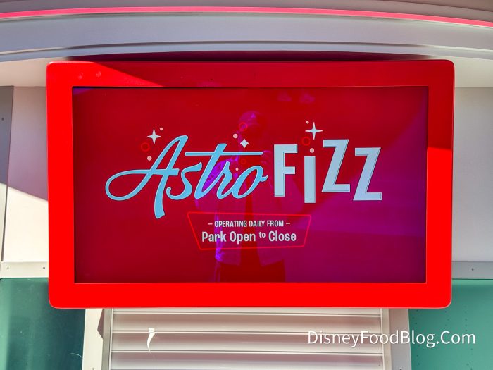 Let’s start by saying that we will miss Cool Ship — it’s been a part of the park (and misting us with water) for over 30 years. That said, count us in for new snacks, treats, and drinks! Progress has been moving rapidly over the past few days. Yesterday, we noticed that they officially put up the sign for AstroFizz, and today, we saw that there are no more construction walls surrounding the kiosk. That means for the first time, we got to see the new kiosk in full glory — look at this new, modernized retro look!