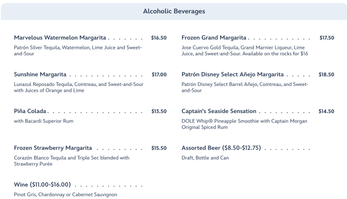 We also picked up the Patrón Disney Select Añejo Margarita for $18.50. This is made with Patrón Disney Select Barrel Añejo, Cointreau, and Sweet-and-Sour.