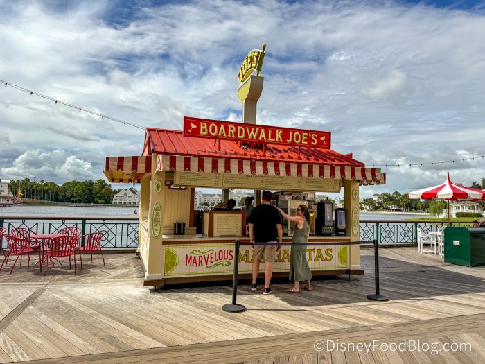 If you’re looking for one of the best places to grab a quick drink to sip as you stroll around Disney World, there’s no better place we have in mind than BoardWalk Joe’s. This stand found at Disney’s BoardWalk is known mostly for its “Marvelous Margaritas!” It’s nestled right in between the likes of notable Disney World restaurants like AbracadaBar, Trattoria al Forno, and its newest neighbors, The Cake Bake Shop and Blue Ribbon Corn Dogs.