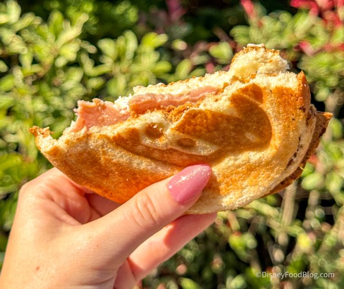 Disneyland Paris has a lot of fun snacks, but we’ll admit that, in some cases, the appearance is more appealing than the flavor. We are happy to report, though, that the Croque McQueen is worth buying! That warm, toasted bread pairs nicely with the cheese, and you really can’t go wrong with a cheese sandwich.