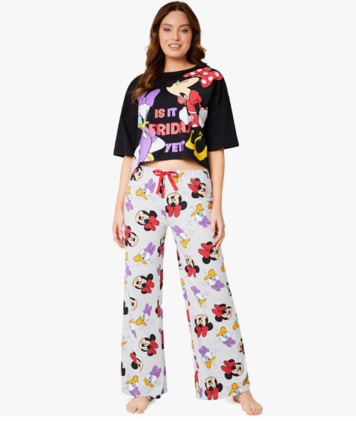 We know Daisy and Minnie are the best gal pals around, and these pajamas give a shoutout to both of them. The top says, “Is it Friday yet?” and the pants have their heads on them. We love how the top is cropped and boxy for a more comfortable fit.