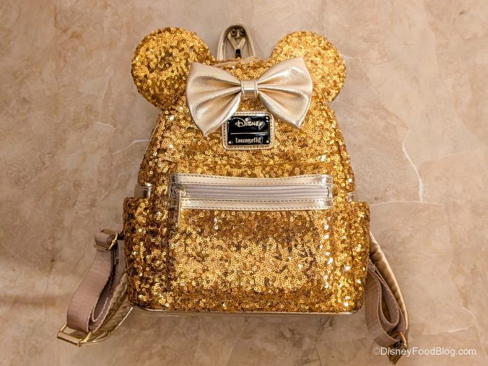 Let’s start with some backstory. I was heading to Disneyland earlier this year, and I wanted a cute backpack to go with all of my outfits. Well, I remembered seeing this Gold Sequin Loungefly on Amazon a few months earlier. Gold goes with everything, and I really liked how this bag seemed to POP right out of the photo on the site. So I ordered it! The best part is that when it arrived, it was even more beautiful than I thought. You should see this baby sparkle in the sunlight!