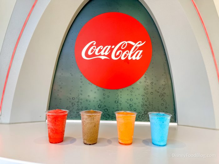 Then, there are four different flavors of Frozen Slushy for $6.49 each– Coca-Cola, Fanta Blue Raspberry, Fanta Orange, and Cherry, though Cherry currently isn’t listed on their physical menus or on the Disney website. That’s right — we got a BONUS SLUSHY, people.