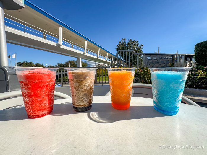 These Slushy flavors are all very basic, but that’s not a bad thing! They all tasted exactly how they were supposed to, and we didn’t notice any issues. If you’ve ever had one of those slushies at the movies or Target (remember when Target used to have food?!), this will taste familiar. The frozen texture was on point, though it did take nearly an hour for us to be able to get these, because the machine was broken and needed to be fixed. Be warned that you may run into that issue on your trip.