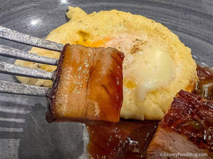 If you’re in the mood for something a bit more breakfasty, how about some Bacon & Eggs. However, this $15 dish isn’t typical diner fare. Instead, it features maple-lacquered pork belly, and smoked cheese grits.