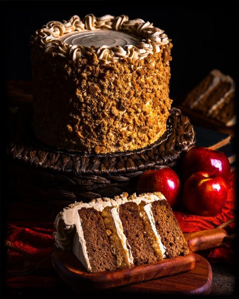 You can also get a Dutch Apple Pie Cake throughout the month of November. It’s made with Apple Spice Cake layers covered with a salty and sweet Apple Caramel Buttercream and filled with traditional Apple Pie Filling and an Oat Crumb topping.