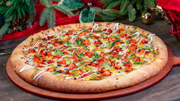 - Diwali Chicken Tikka Masala Pizza: Neapolitan dough, tikka masala sauce, fresh mozzarella cheese, marinated chicken, red onion, parmesan, and cilantro (New)