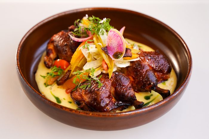 - Holiday Special: Cornish game hen stuffed with a chorizo-date stuffing, orange beurre blanc, pickled jalapeño, and shaved fennel salad with chicken chicharron (Only available Dec. 24 and Dec. 25) (New)