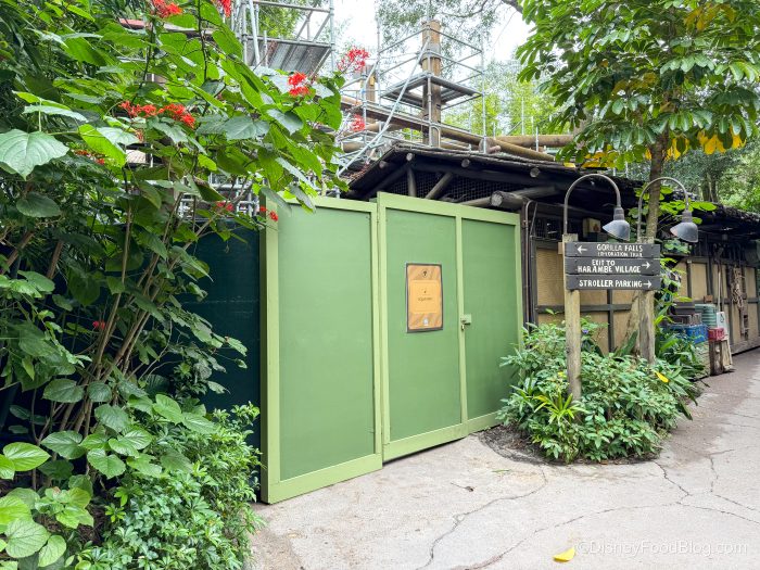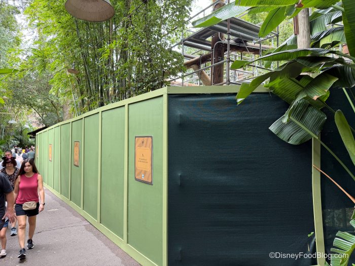 Well, another set of construction walls has appeared at an Animal Kingdom attraction, Gorilla Falls, and we just wanted to warn you ahead of time so it doesn’t catch you by surprise.
