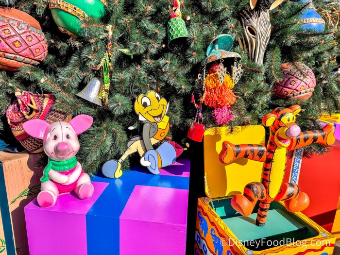 Seriously, I’m obsessed. Tigger is in a jack-in-the-box, and Piglet looks like a stuffed animal. Even Jiminy Cricket is getting his time to shine. Many of the ornaments look hand-carved, which ties into the Animal Kingdom aesthetic.