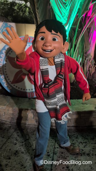 The Miguel meet-and-greet was very quick, but seeing him in his holiday outfit had us going un poco loco!