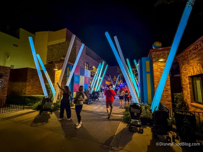 If you’re a Pixar fan, you won’t want to miss this one! Find the Pixar Disco throughout the night (it takes a break between 9:30PM-10:30PM) right at Pixar Plaza. It was all decked out — we loved to see it!