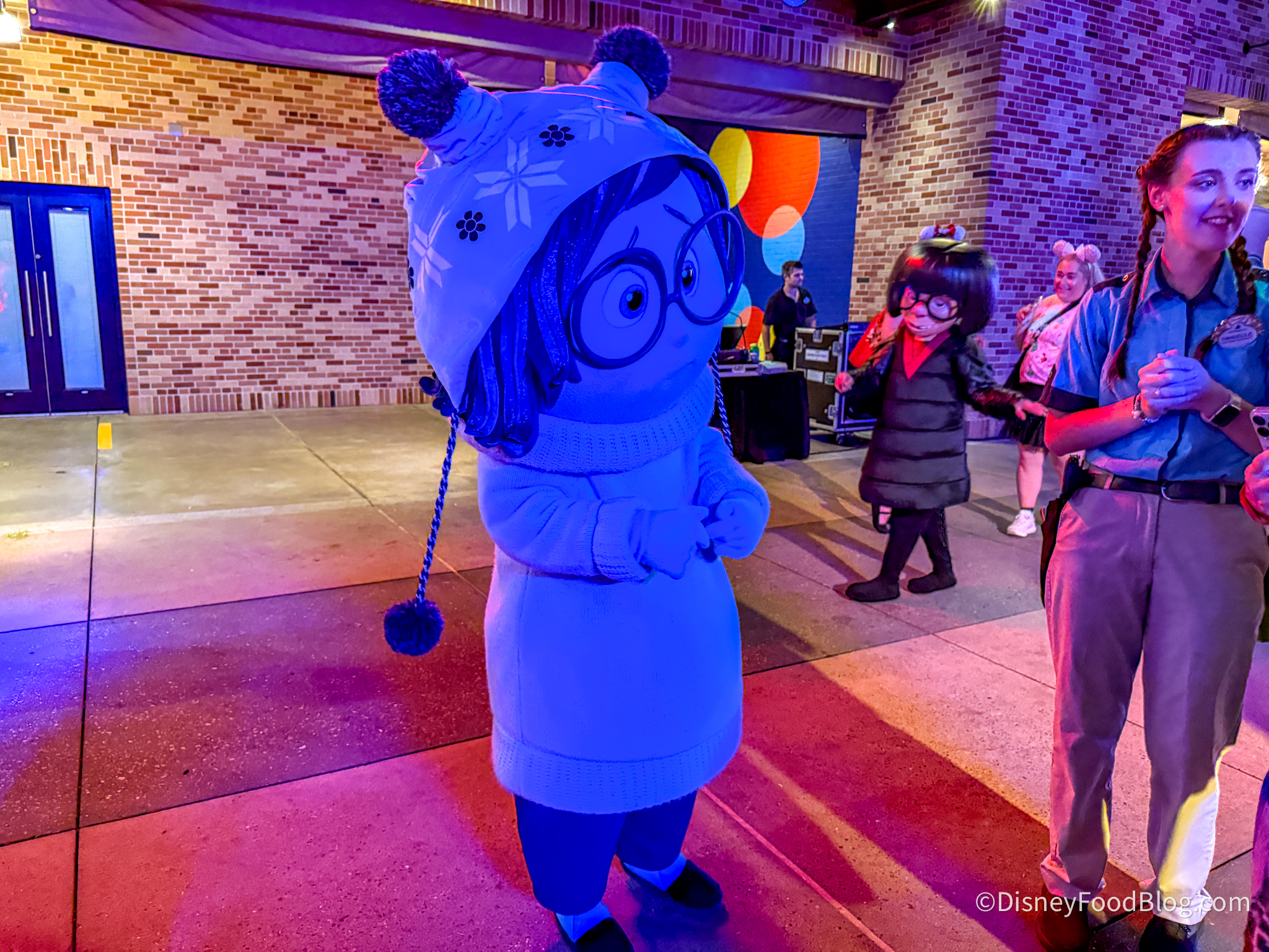 Over here, you can meet Frozone, Mike Wazowski, Edna Mode, and Sadness in her winter toboggan!