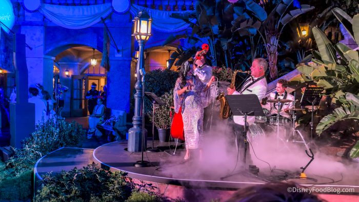 Want to party with the ghosties? Then the Twilight Soiree is for you! Located in the courtyard by Tower of Terror, this entertainment offering features a live band and singer who all sound wonderful, and it’s just a vibe, for lack of a better word.