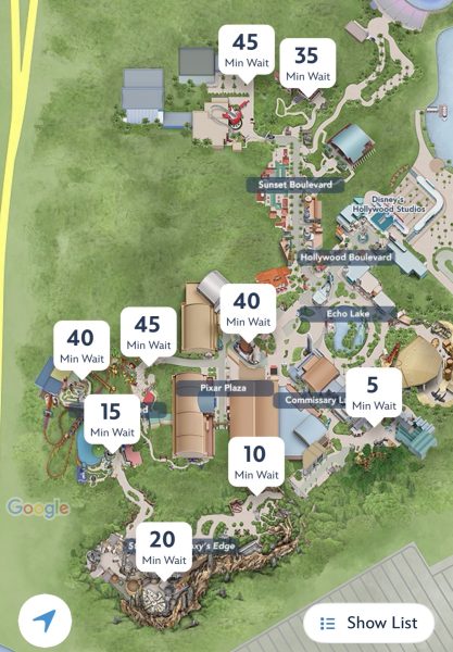 At 11:30 PM, all the attractions had extremely low wait times. It was the perfect time to get on rides over and over and OVER again! They looked like: