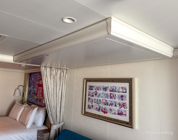 Right above the couch is where you’ll find the ceiling pull-down bed — just as your Stateroom Attendant if you need it set up!