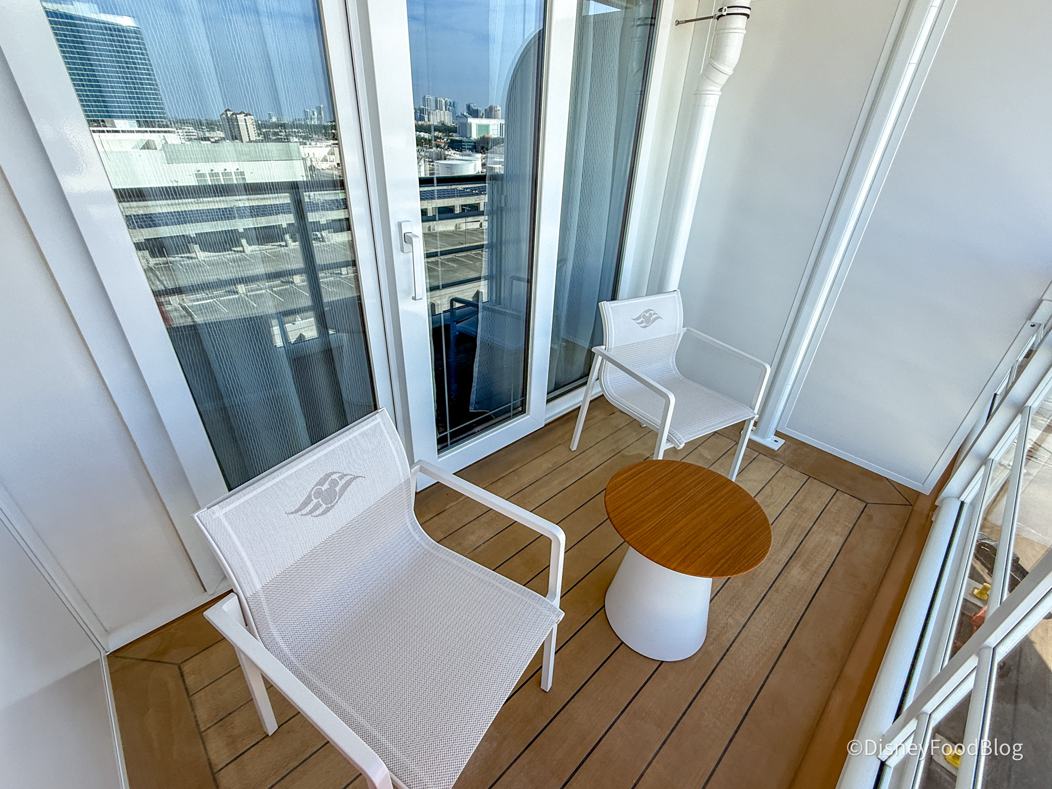 This type of stateroom features a verandah, complete with two chairs and a table — perfect for sipping coffee in the morning.
