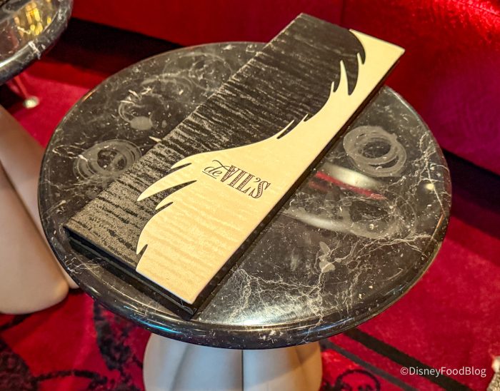 The Disney Destiny is Disney Cruise Line‘s newest ship, which is themed to heroes and villains (the first Disney Cruise Line ship of its kind!), and we’re so thrilled to be on and checking out all the new entertainment, dining options, characters, and more onboard. One of the things we’ve been looking forward to the most has been the new lounges — if you’ve ever wanted to check out a lounge themed to one of the most iconic Disney Villains, look no further than the De Vil’s lounge!