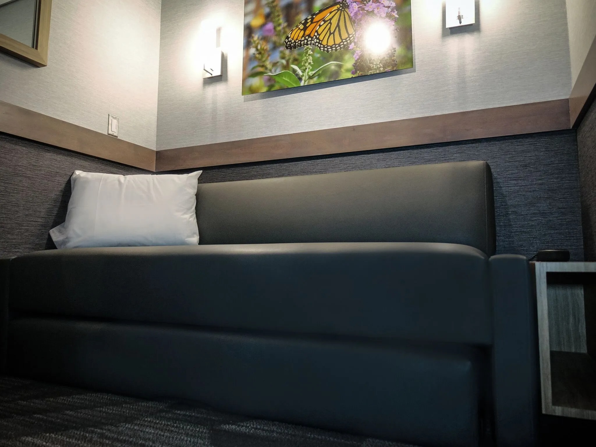 Now, it wasn’t cheap. I was quoted $70 per hour or $232 for an overnight stay. I hesitated for about five seconds before deciding my sanity was worth it. The second I closed the door behind me, I knew I’d made the right call. The room was dark, quiet, and private, three things you rarely get in an airport. I stretched out on the daybed, set an alarm, and finally got some real rest. No overhead announcements, no flickering fluorescent lights, and no worrying about someone grabbing my bag while I tried to doze off.