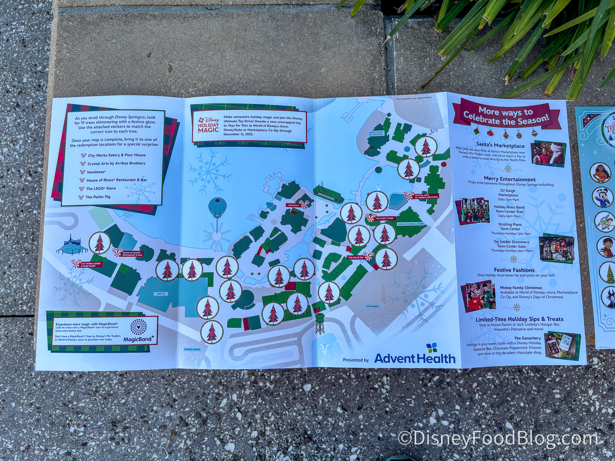 The map shows the locations of all the trees, along with stickers so you can mark off each tree you find. There’s also a bunch of coupons in the map for places inside Disney Springs to save some money while you’re shopping and eating. Once you complete the scavenger hunt, make sure you return to those locations to receive a special prize — it’s usually a button!