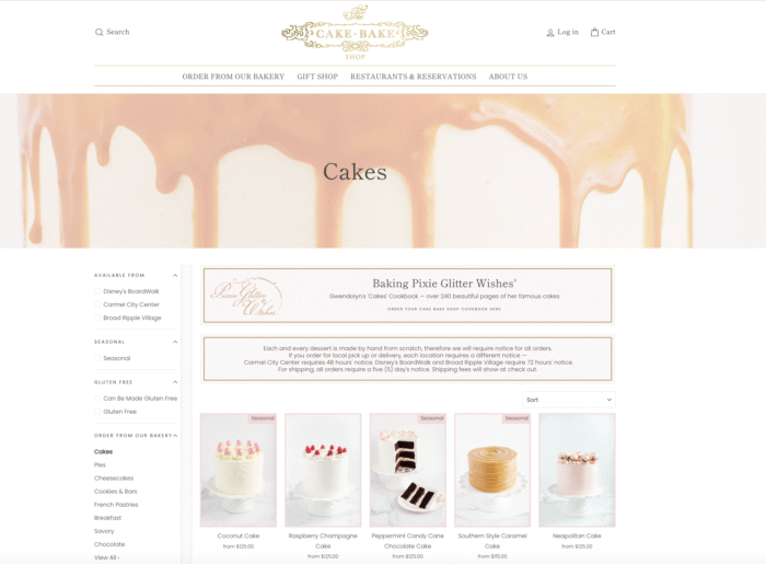 There are tons of rotational flavors plus classics like the Pixie Fetti Birthday Cake! You can also order these cakes ahead for pick up if you’re closer to one of their restaurants. For pick up, each cake requires a minimum of 48 hours, with some of the locations requiring 72 hours’ notice. For shipping, all orders require a five-day notice.