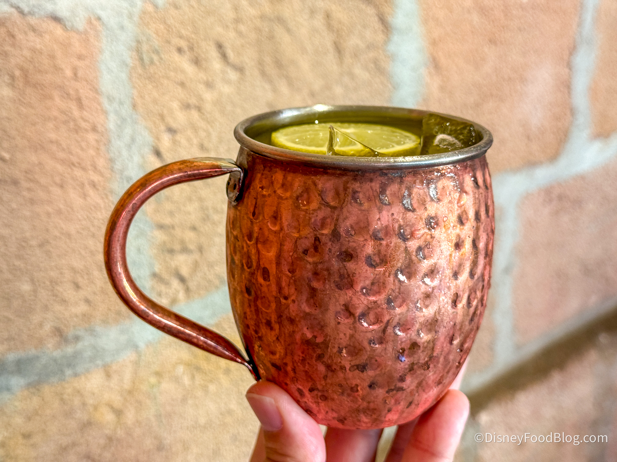 We started by grabbing two different drinks to try out, including the Limoncello Mule for $20. This is Grey Goose L’Orange vodka, limoncello, peach purée, orange juice, pineapple juice, lime juice, and ginger beer. We recently had a Cast Member inside the Italy Pavilion recommend this to us, so we wanted to give it a try, and we understand why it was recommended! Normally, our reporter is adverse to ordering mules because they’re often similar-tasting and are easy to make at home, but this is an exception to that. This is more like a juice cocktail with the peach puree, the orange, the pineapple, and the lime. It was so fruity and delicious, but the ginger beer kept it from being overly sweet, and so it was just an incredible blend of flavors. We would recommend it for BOTH those who enjoy sweet drinks, as well as those who want something milder, and don’t be scared by the ginger!