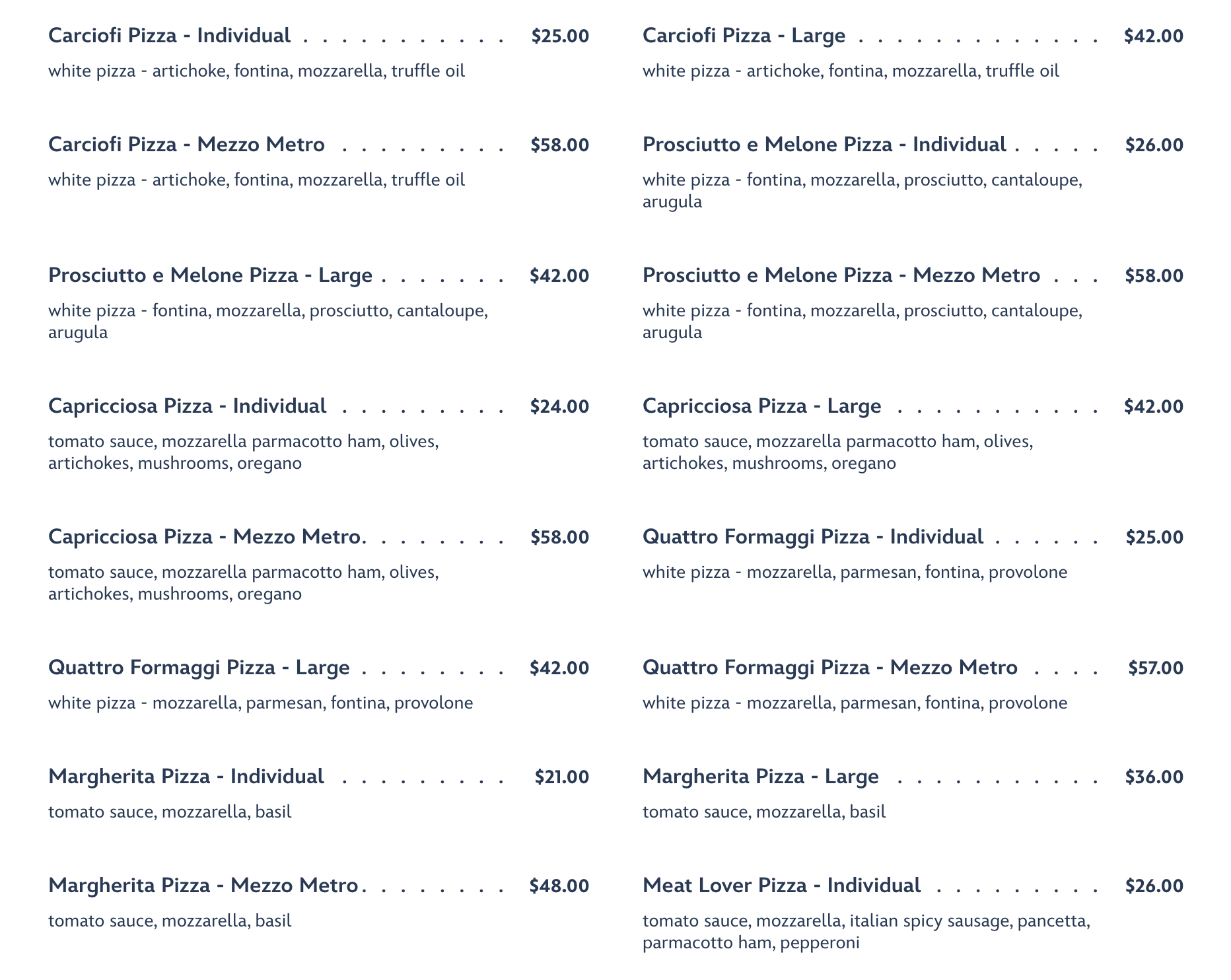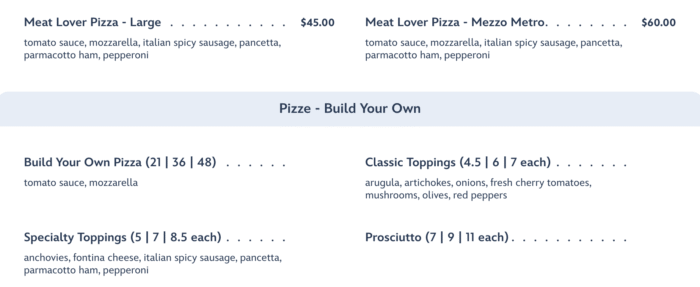 - You’re looking to feed a large group. The Mezzo Metro-sized pizzas are literally a meter long, and can be really cost-effective if you have a larger family or group (who can all agree on the same pizza)!