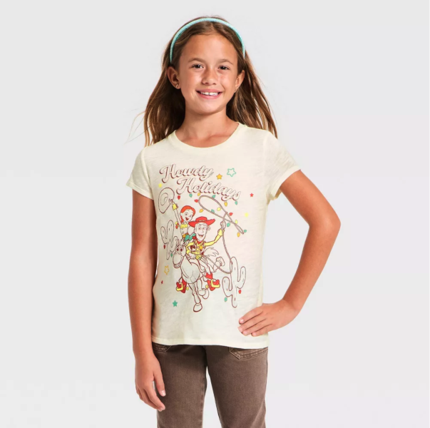 We’re ready to break out our holiday gear right away on December 1st. Be prepared for your little one to spread some Pixar holiday cheer at school with their new Woody and Jessie “Howdy Holidays” shirt.