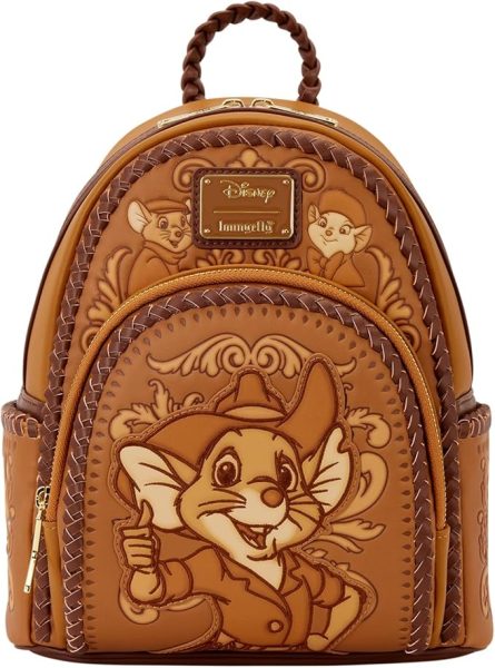 This Loungefly The Rescuers Down Under Backpack is the backpack this sequel film deserves! Rustic yet cute, this backpack is made with faux leather and features the famous mice characters from the film, as well as other animal characters on the side pockets!