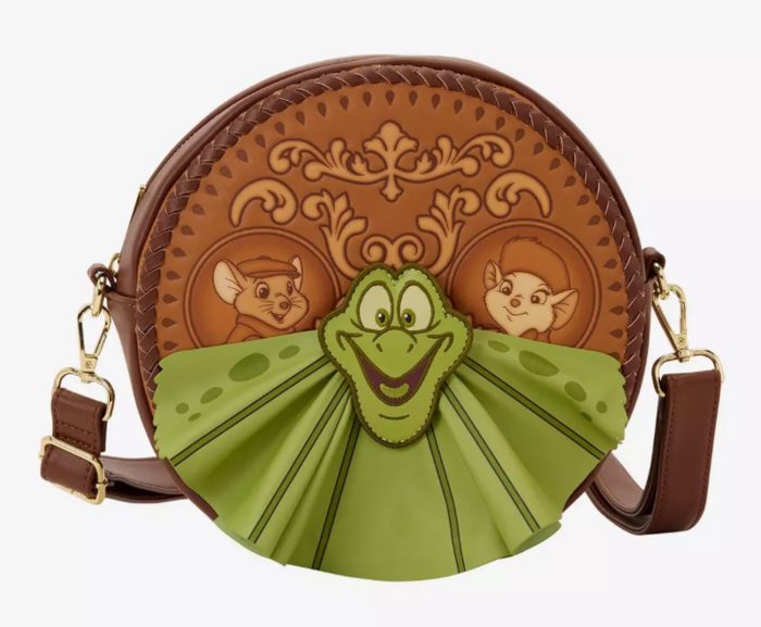 The Loungefly Rescuers Down Under Crossbody Bag is in the shape of a circle and features Frank on the front! Behind him, you’ll find designs of Bernard and Miss Bianca, which can be hidden behind Frank’s neck frill. This frill extends out and up to cover the front of the bag, giving it an interactive element. The back also includes the silhouette of an albatross. Pick yours up today!