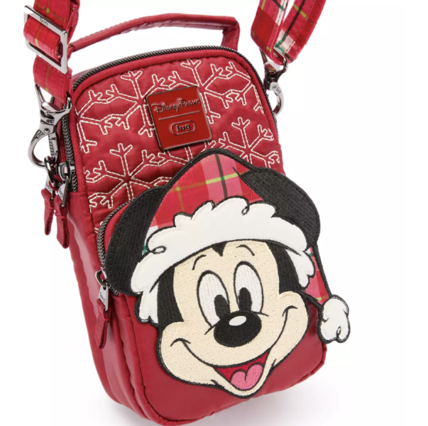 If a crossbody bag is more your style, this Lug bag is PERFECT. It features a holiday design with Mickey in a fun plaid Santa hat, along with a pattern of snowflakes. The inside has a plaid lining that matches Mickey’s hat.