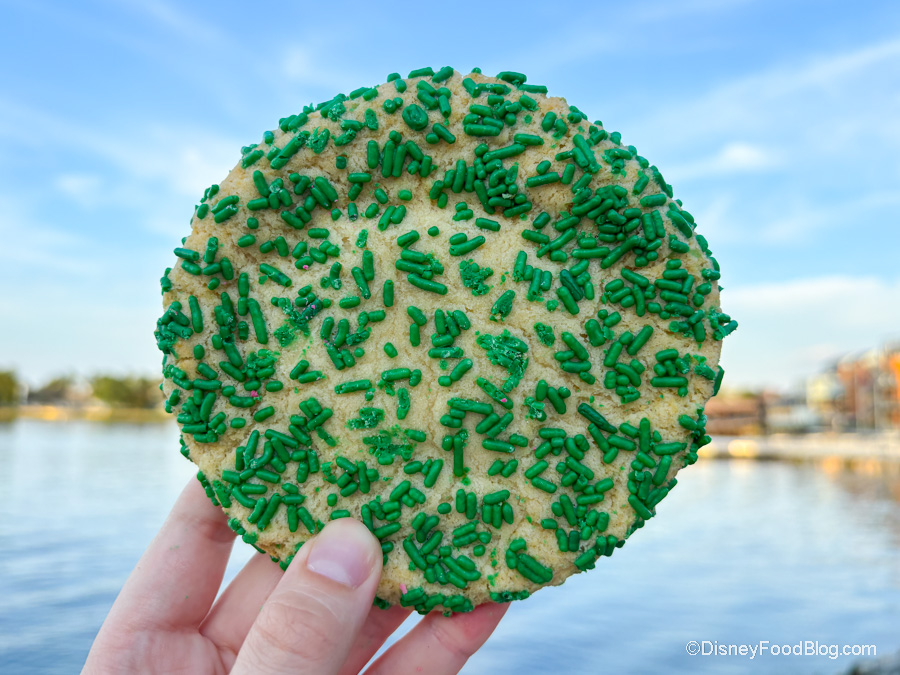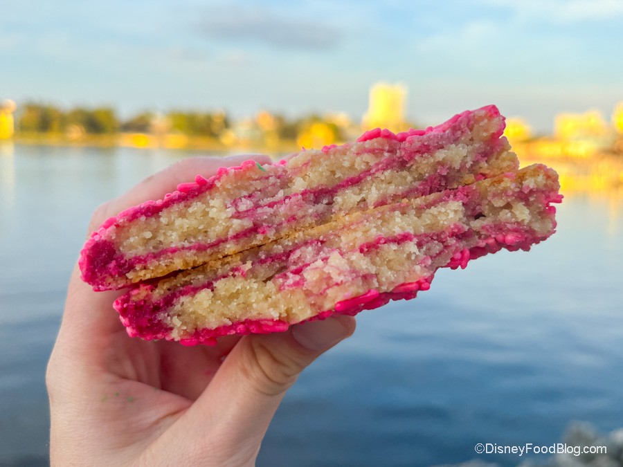 You’ll find these new cookies at Summer House on the Lake (you know, the place with the COOKIE BAR). The first cookie is the Sparkle Sprinkle, which is a Raspberry Cheesecake-flavored cookie for $5.50. Of course, this cookie is covered in pink sparkly sprinkles…just like Glinda! It tastes just like raspberries and cream, y’all.