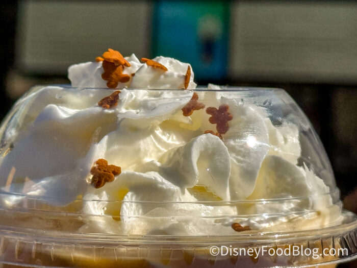 The sprinkle on top, that sharded peppermint candy, is the star of the drink, just like those little gingerbread man sprinkles were for the drink at Hollywood Studios. It is worth giving a go if you are in Magic Kingdom, looking to drink coffee, and want something with some visual festive appeal, as well as a pleasant flavor.