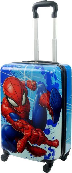 Travelling is about to get SUPER fun for your little ones, with this Spider-Man Suitcase on Amazon! This is a children’s hard-sided luggage featuring Spider-Man posed on it.