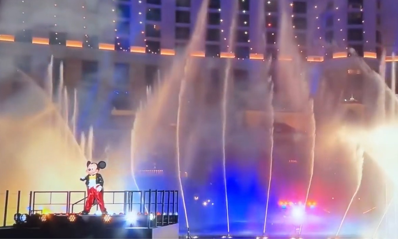 During the show, Mickey Mouse acted as conductor to the Bellagio fountains and directed them to do their thing. As the Bellagio fountains danced and soared to some VERY familiar music, a very cool drone show was also playing overhead. Seriously, Disney has OUTDONE itself with its entertainment.