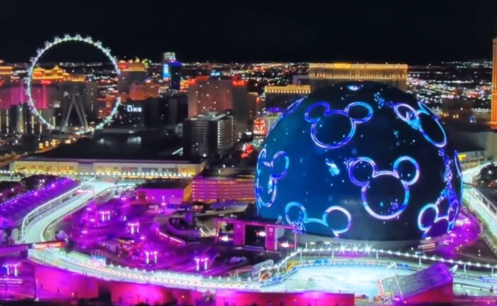 The entire city got in on the celebration while the Las Vegas Sphere lit up the night sky with images of Mickey.