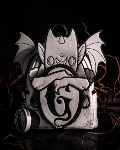 That’s right, a Gideon’s Bakehouse Loungefly is coming on Friday, November 28th, and it’s themed around the infamous Gideon’s Bakehouse gargoyle. It features the Gargoyle hugging the Gideon’s “G” logo. Oh, and did we mention that its wings can move up or down so you can position them however you want?