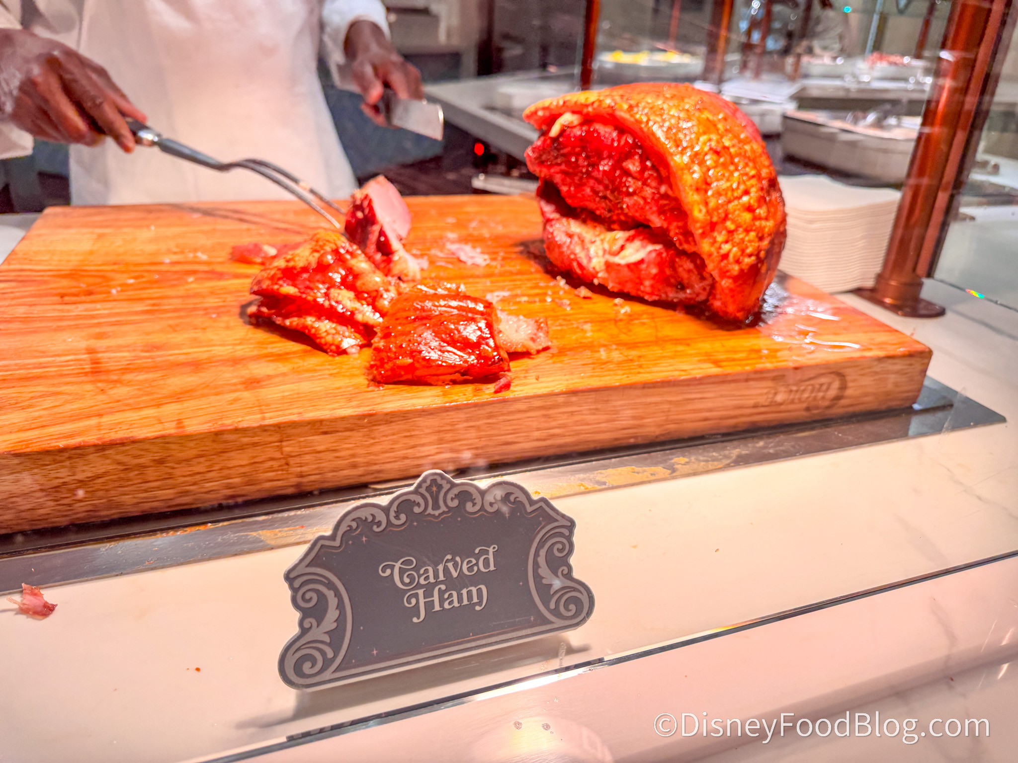 We grabbed the Carved Ham, and this wasn’t quite our favorite. It was fairly dry, tough, and hard to cut through, but it was salty and savory, and it still had a great flavor. The texture just wasn’t our favorite.