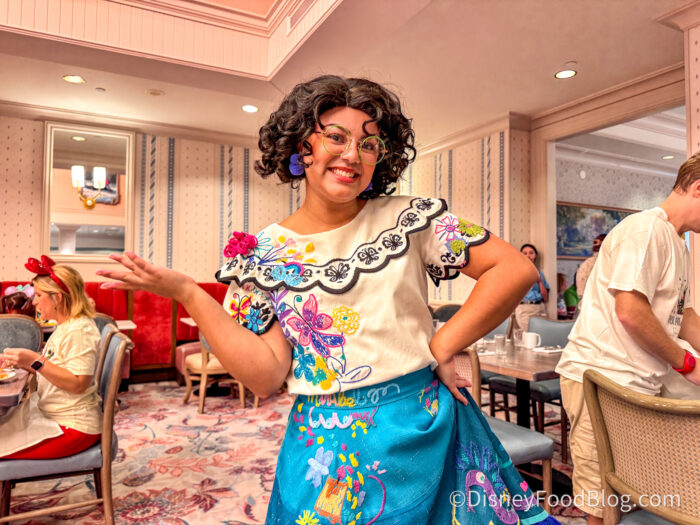 …and Princess Tiana. These are all characters known for making dreams come true and for wishing. Characters will come up to you at your table, but don’t worry if you’re getting food at the buffet and miss anyone. Cast Members are great at making sure every character visits every table, but you can also remind your server if you’re getting ready to leave and haven’t met someone.